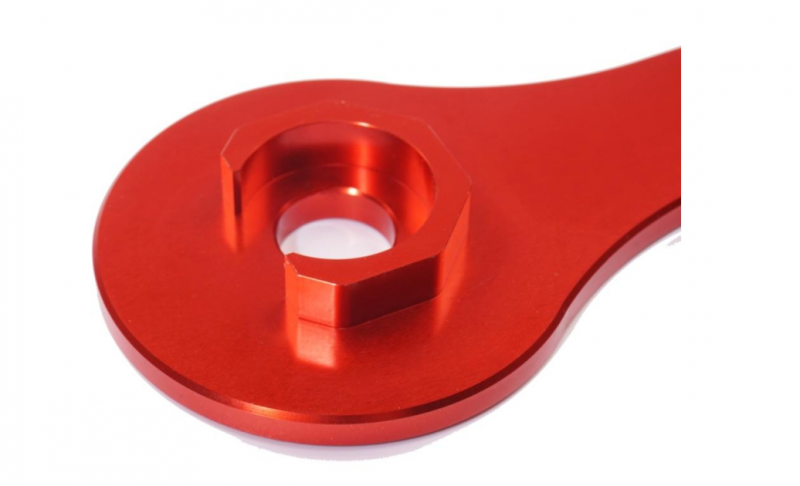der Federseite der SHOWA SFF Gabel (Deckel mit Einsteller zur Federvorspannung)